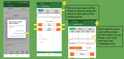 - The Scorer Will Now See A Score Card As Per The Sport. Use The ‘-’ And ‘+’ Buttons To Update The Live Score Card.